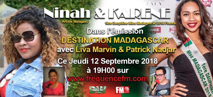 Soyez au rendez-vous avec nos invitées Ninah artiste Malagasy et Karene 1ère Dauphine Miss Madagascar 2018 France