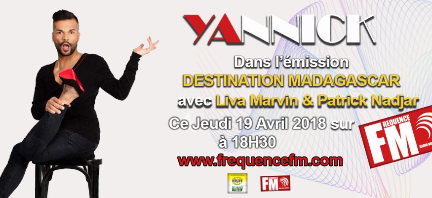 L'émission Destination Madagascar nous avons comme invité Mr Yannick pour nous parler de son parcours, son spectacle et ses projets. Emission animé par Liva et Patrick. Le Jeudi 19 Avril 2018 à 18H30 sur www.frequencefm.com