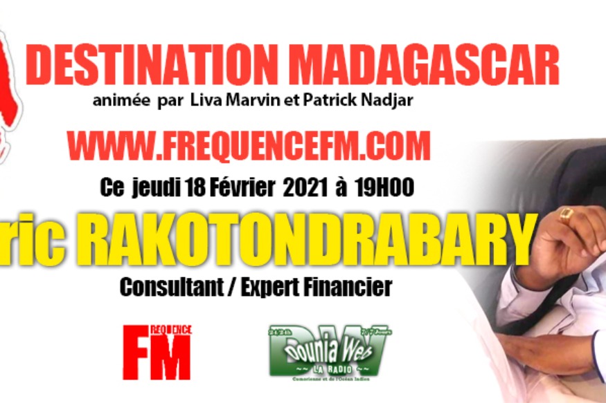 Ce Jeudi à 18 février à 19h30, notre invité Monsieur Eric Rakotondrabary dans lémission Destination Madagascar sur FRÉQUENCE FM avec Livia Marvin et Patrick Nadjar. Restez connecté et suivez nos actualités sur frequencefm.com ...